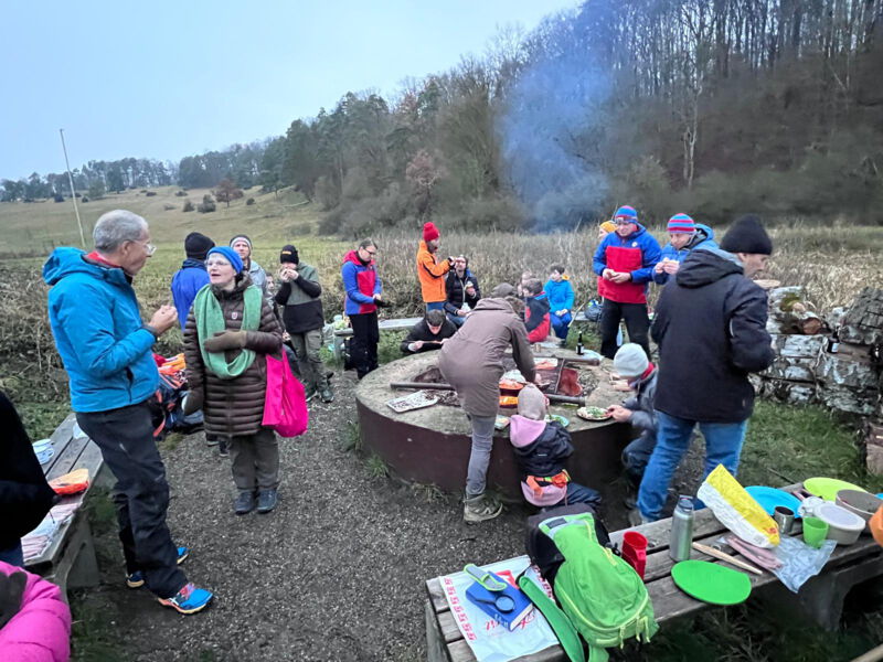 Bei etwas feuchtem aber nicht zu kaltem Wetter traf man sich am Bindstein zum Jahresabschluß: Motto "Wintergrillen". Es gab Punsch und anderes, auf den Grill wurden Würstchen und mehr aufgelegt. Bei guten Gesprächen und noch angenehmen Temperaturen am Nachmittag ging die Zeit schnell vorbei. Nach Einbruch der Dunkelheit spürte man dann selbst am Feuer die zunehmende Kälte, so das langsam ans Ende des Nachmittags gedacht wurde. Insgesamt war es ein schöner Abschluß des doch recht arbeitsintensiven Jahres mit vielen Terminen für alle ehrenamtlichen Mitglieder.