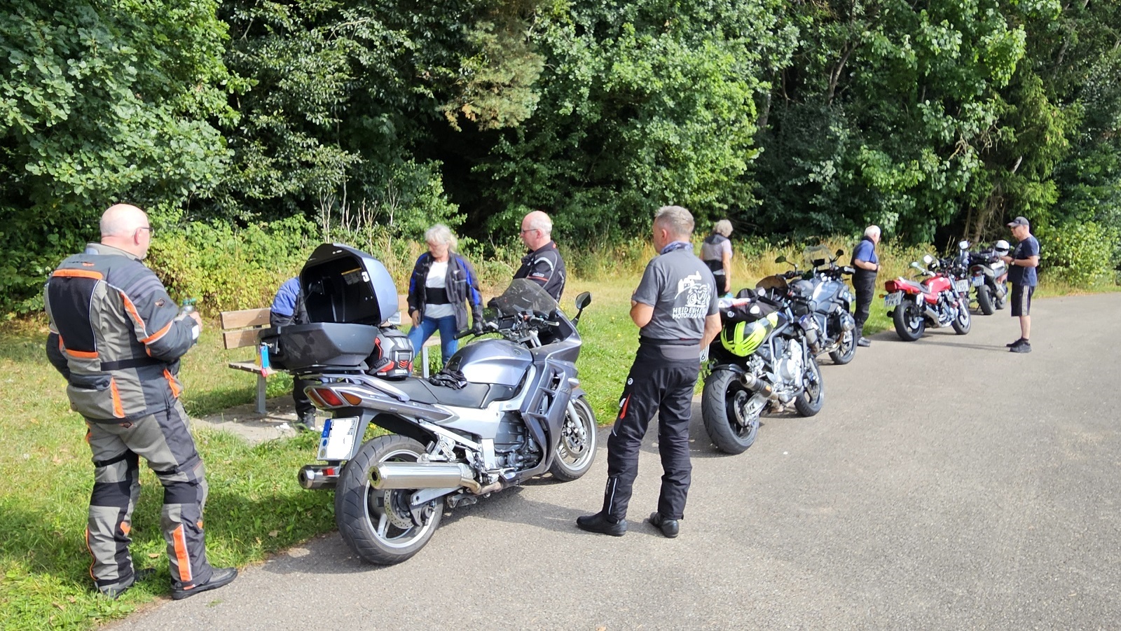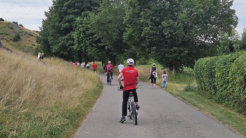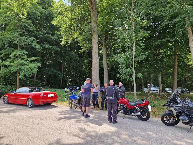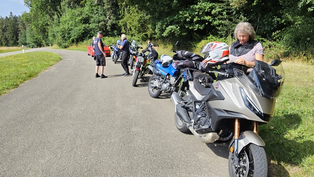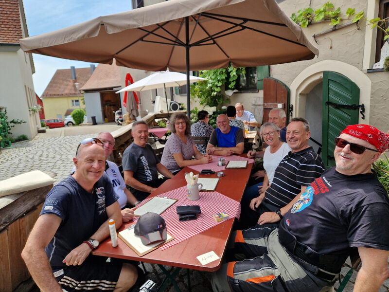Bei bewölktem aber warmen Wetter trafen sich am Sonntagmorgen neun Bergwachtmitglieder mit Bike und Cabrio in Nattheim, dem Ausgangspunkt der ca. 125 km langen Tour Richtung Dinkelsbühl. Die Route führte über Härtsfeld und Ries ins fränkische, das sich durch eine große Seendichte auszeichnet. Über kleine, gut zu fahrende und landschaftlich schöne Sträßchen erreichte die Gruppe gegen 12 Uhr das Gasthaus Dollinger in Segringen bei Dinkelsbühl. Bei sehr gutem Essen und ebenso guter Stimmung verbrachte man dort in gemütlicher Runde die Mittagszeit. Nachmittags waren rund 80 km auf kleinen, verkehrsarmen Straßen zurückzulegen was bei 30 Grad Wärme, trotz kurzer Strecke, zwischendurch eine Pause im Schatten erforderte. Am Elchinger Flugplatzrestaurant angekommen waren dann kühle Getränke und Eiscafe die erste Wahl. Über Neresheim, Auernheim und Fleinheim führte die letzte Etappe zurück nach Nattheim. Dort endete der sonnige, genußreiche Bike und Cabrioausflug mit landschaftlich schöner, abwechslungsreicher Streckenführung, zufriedenen Teilnehmern und einem sichtlich entspannten Tourgide.