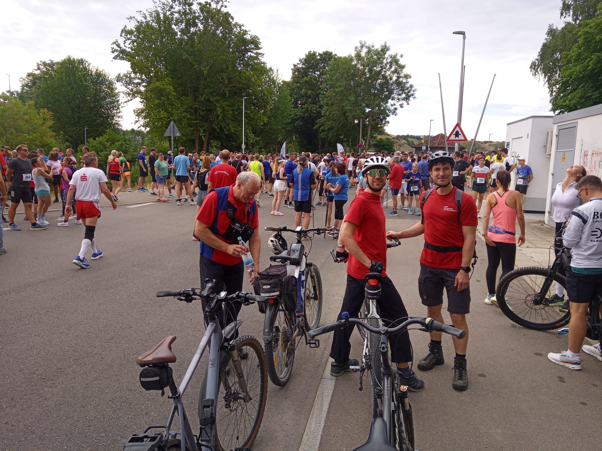Am Sonntag stand für 19 Einsatzkräfte die sanitätsdienstliche Betreuung des mit rund 900 Läufern stattfindenden Eselsburger-Tal-Laufes auf dem Programm. Mit insgesamt drei Bergwachtfahrzeugen, fünf Fahrradstreifen mit EH-Material und Funk, einer Notärztin und Fachpersonal im Stadion, deckte man die Laufstrecken über 5, 10 und 21 km dank jahrelanger Erfahrung bei der Veranstaltung, für einen medizinischen Notfall bewährt gut ab. Der Wetterbericht versprach nach tagelangen Temperaturen über 30 Grad am Sonntagmorgen doch fast perfekte Bedingungen. Bewölkter Himmel und angenehme "Kühle" herrschten beim Start. Bis zum Ende der Veranstaltung waren keine nennenswerten Vorfälle für die Einsatzkräfte auf der Strecke und im Stadion zu verzeichnen.