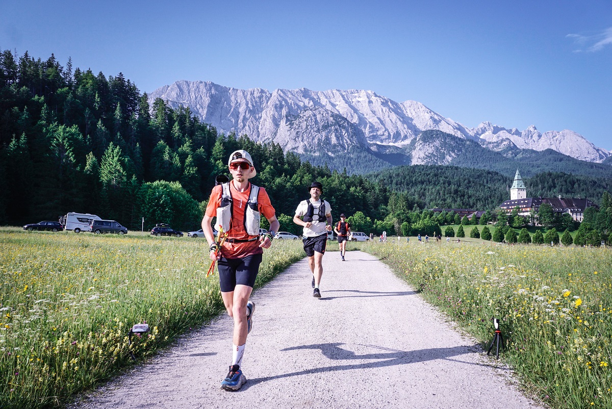 Der Ultratrail rund um das Zugspitzmassiv mit 5300 Höhenmetern führte am Eibsee vorbei zur Ehrwalder Alm, weiter zum Scharnitzjoch nach Mittenwald und über Schloß Elmau und den Osterfelderkopf zurück nach Garmisch. Der Veranstalter hatte dafür 10 Verpflegungsstaionen eingerichtet.