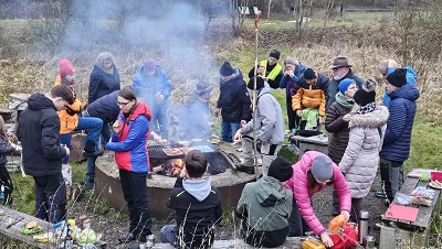 Bei etwas feuchtem aber nicht zu kaltem Wetter traf man sich am Bindstein zum Jahresabschluß: Motto "Wintergrillen". Es gab Punsch und anderes, auf den Grill wurden Würstchen und mehr aufgelegt. Bei guten Gesprächen und noch angenehmen Temperaturen am Nachmittag ging die Zeit schnell vorbei. Nach Einbruch der Dunkelheit spürte man dann selbst am Feuer die zunehmende Kälte, so das langsam ans Ende des Nachmittags gedacht wurde. Insgesamt war es ein schöner Abschluß des doch recht arbeitsintensiven Jahres mit vielen Terminen für alle ehrenamtlichen Mitglieder.